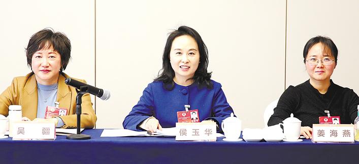 1月16日,妇女联合会界组进行小组会议,省政协委员侯玉华(左)发言。 (湖北日报全媒记者 张鸿 摄)