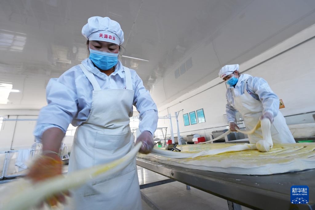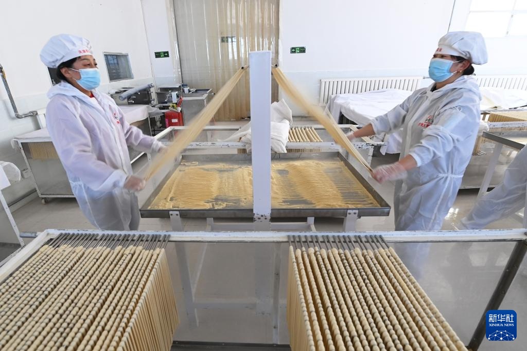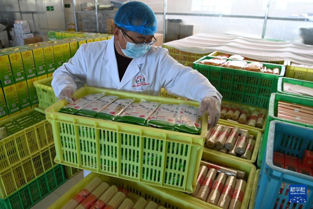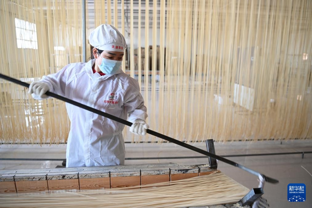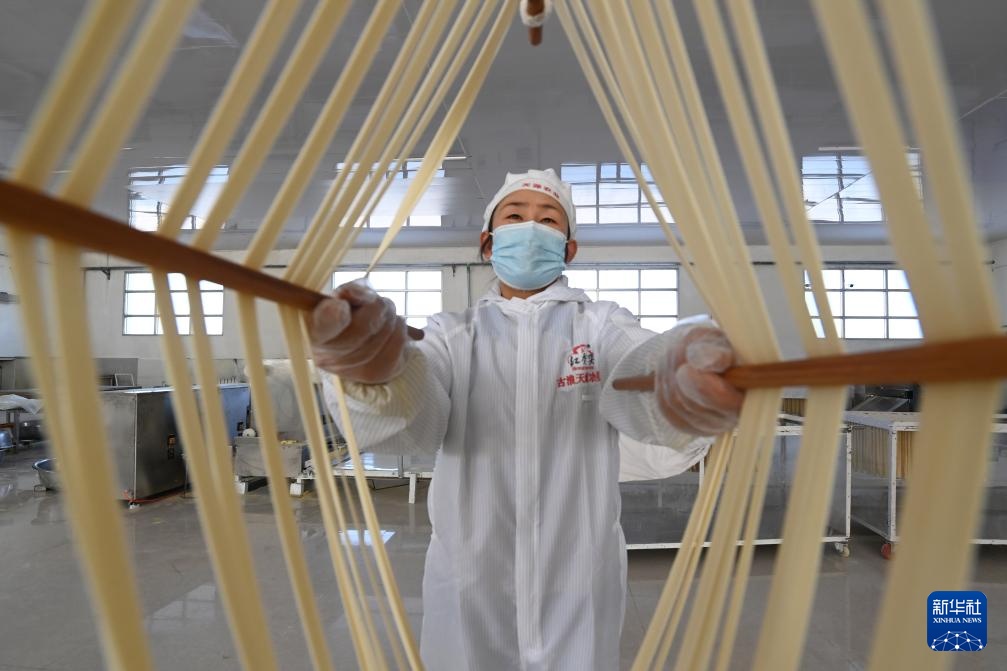 春节临近,在甘肃省武威市古浪县,“非遗”产品——古浪手工挂面订单大增,当地一些企业的挂面生产车间内,工人们抓紧制作手工挂面。古浪手工挂面历史悠久,以国家农产品地理标志产品古浪红光头小麦面粉为原料,经十多道工序加工而成。2024年12月,古浪手工挂面制作技艺被列入甘肃省第五批省级非物质文化遗产代表性项目名录。