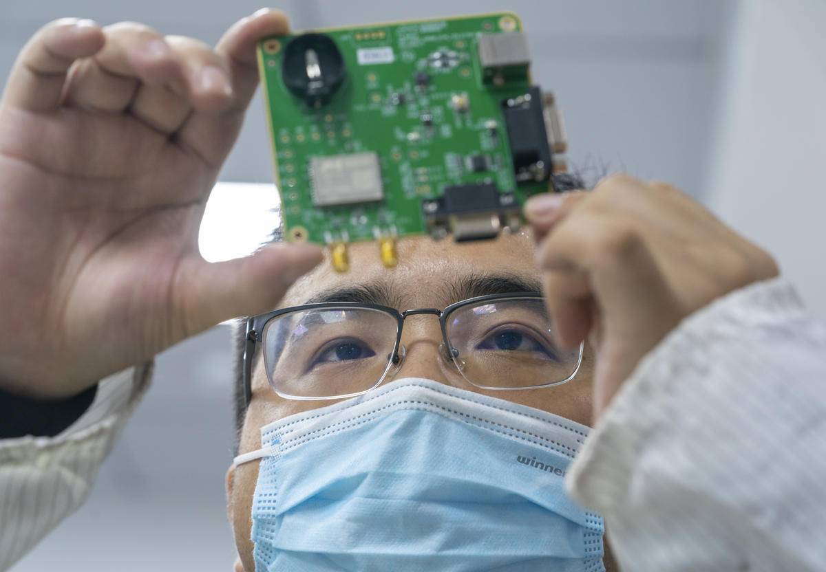 11月23日,位于光谷北斗大厦的武汉梦芯科技有限公司实验室,技术人员在测试新一代北斗芯片稳定性。(湖北日报全媒记者 魏铼 通讯员 韩雨晴 摄)