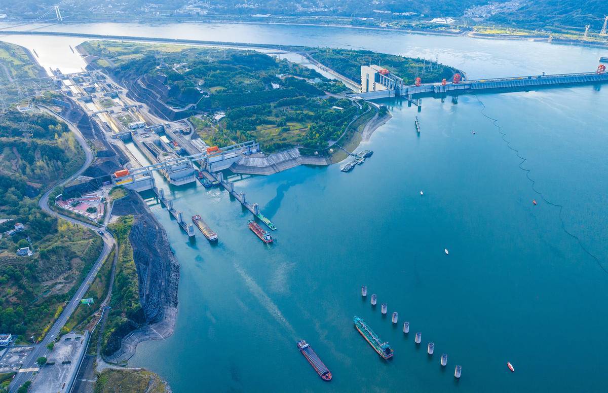 2024年10月2日,三峡双线五级船闸一片繁忙,船舶往来如梭。(视界网 郑家裕 摄)