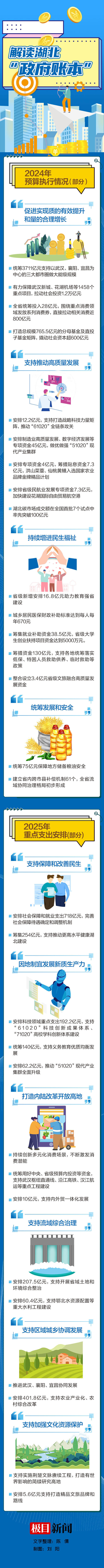 2024年,湖北省的“钱”花在了哪里?2025年的“民生账本”又包括哪些内容?1月17日,受湖北省人民政府委托,湖北省财政厅将2024年预算执行情况和2025年预算草案提请湖北省十四届人大三次会议审议。