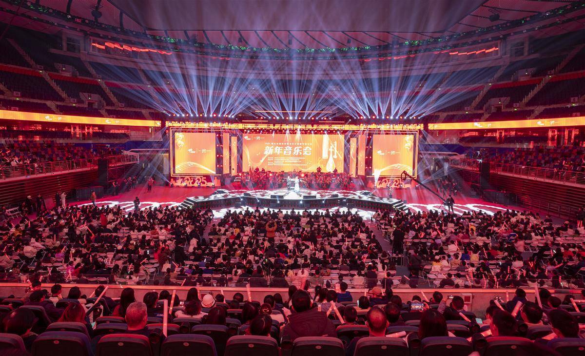 1月17日晚,2025湖北省迎新春新民乐汇演暨中国光谷新年音乐会,在光谷国际网球中心中央球场举行。音乐会通过探索经典民乐与人工智能技术融合,呈现中国传统音乐与人工智能技术的奇妙相遇。中国歌剧舞剧院民乐团现场演绎《射雕英雄传》《西游记》《小刀会序曲》等经典影视主题曲。在央视火爆出圈的神仙乐团——上海自得琴社也登台表演,他们或抚琴、吹箫,或击打鼓,为大家再现了一场“天上乐、画中仙”的唐风盛宴。