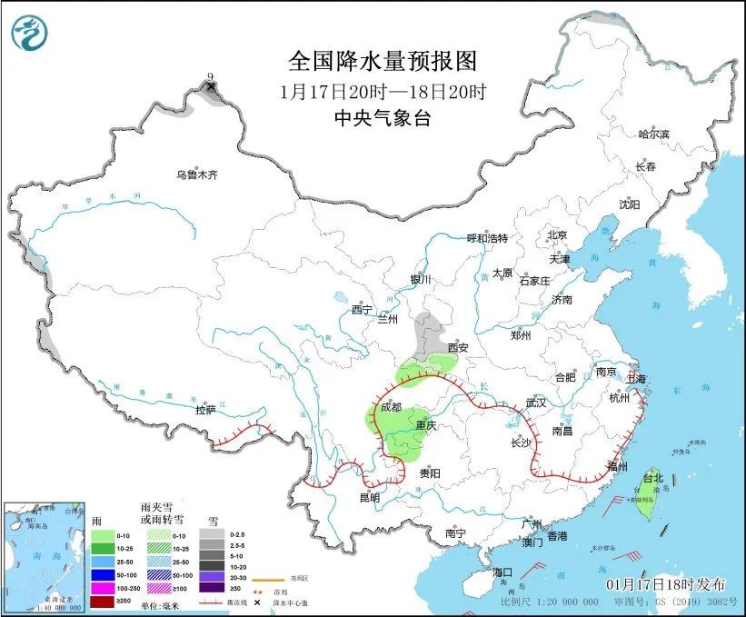 新疆北疆北部和南疆西部山区、西藏西部、甘肃东部和南部、宁夏南部、陕西中南部等地部分地区有小雪或雨夹雪,其中,新疆北疆北部等地部分地区有中到大雪。陕西南部、四川盆地中南部、重庆西部、贵州西北部、台湾岛等地部分地区有小雨。