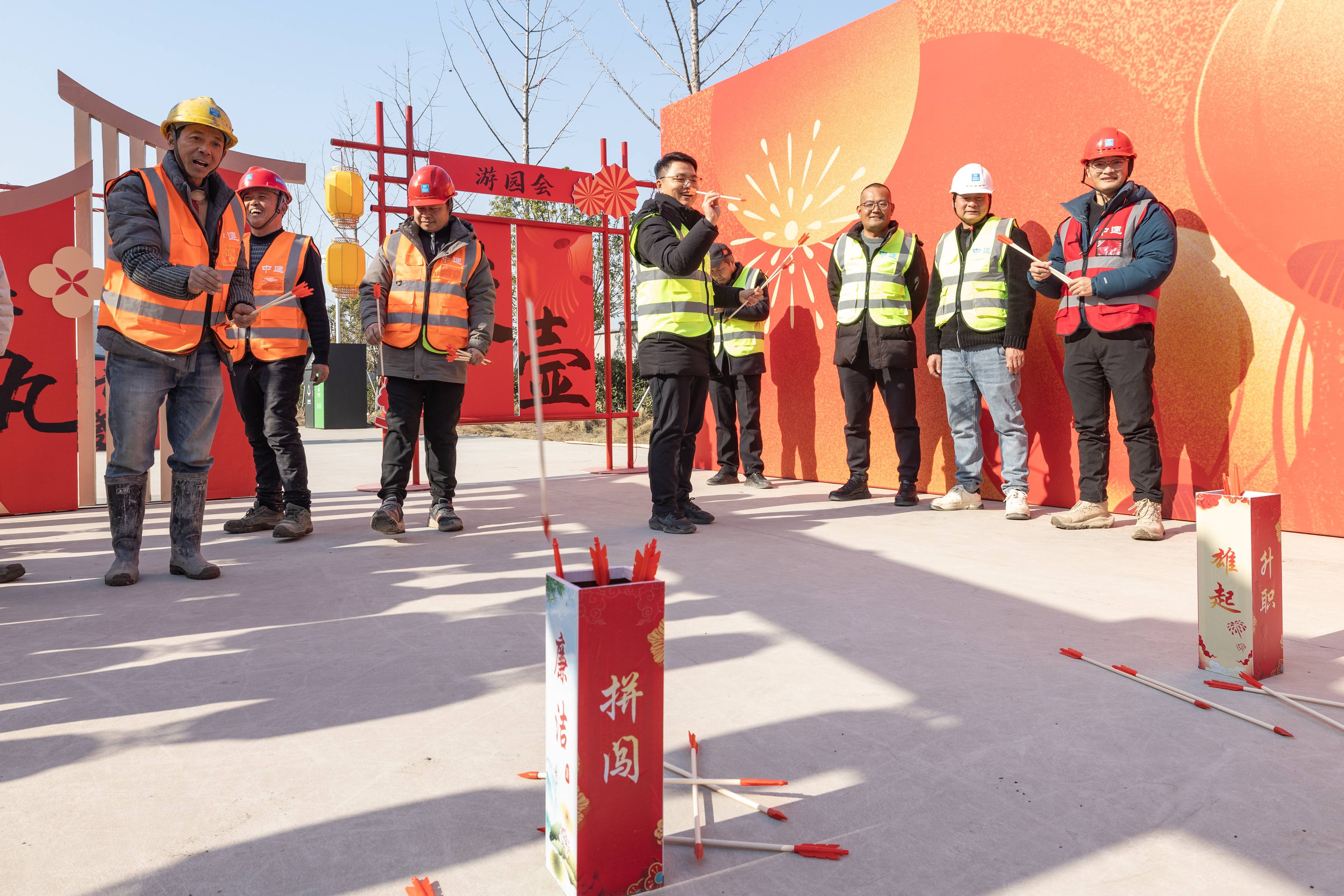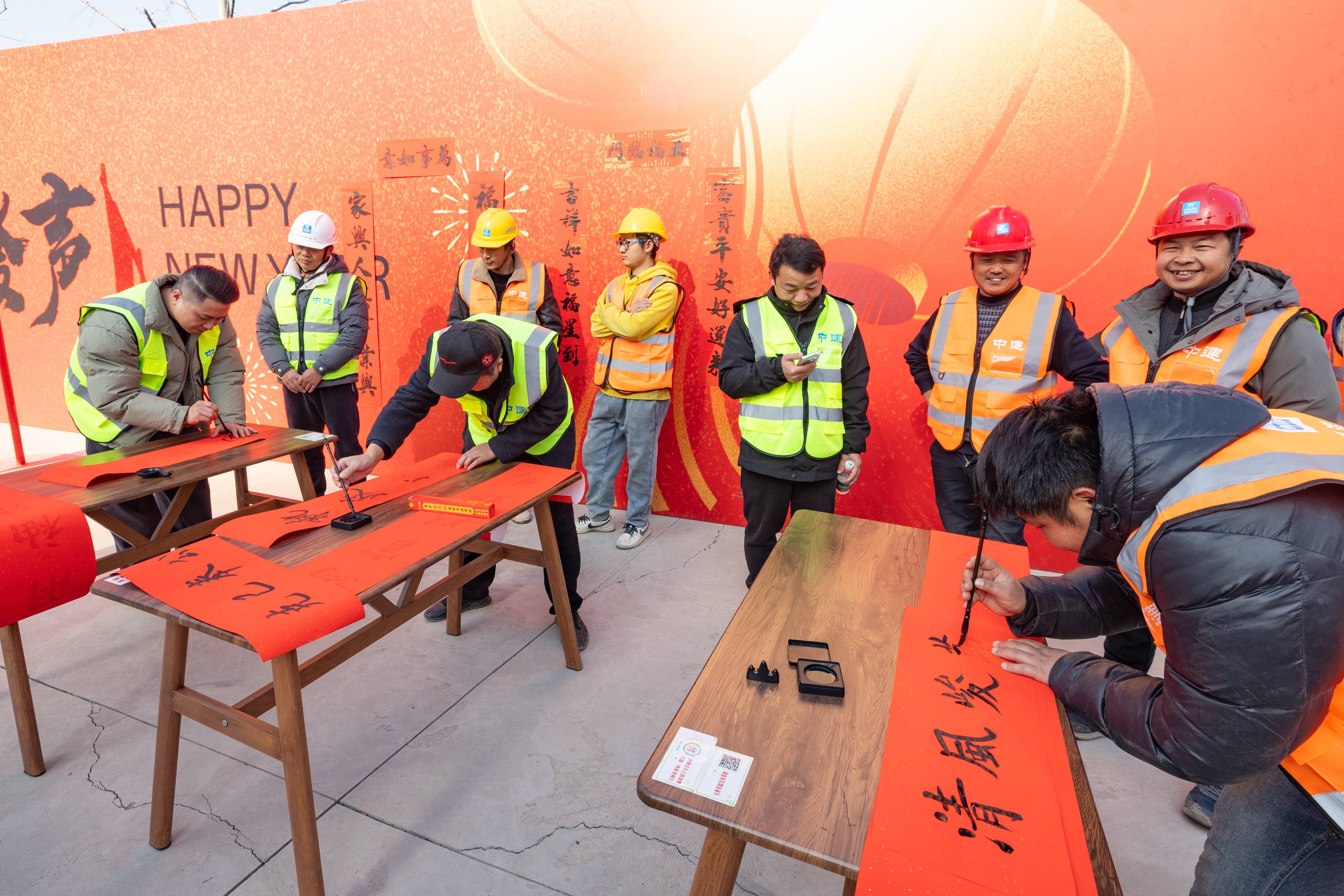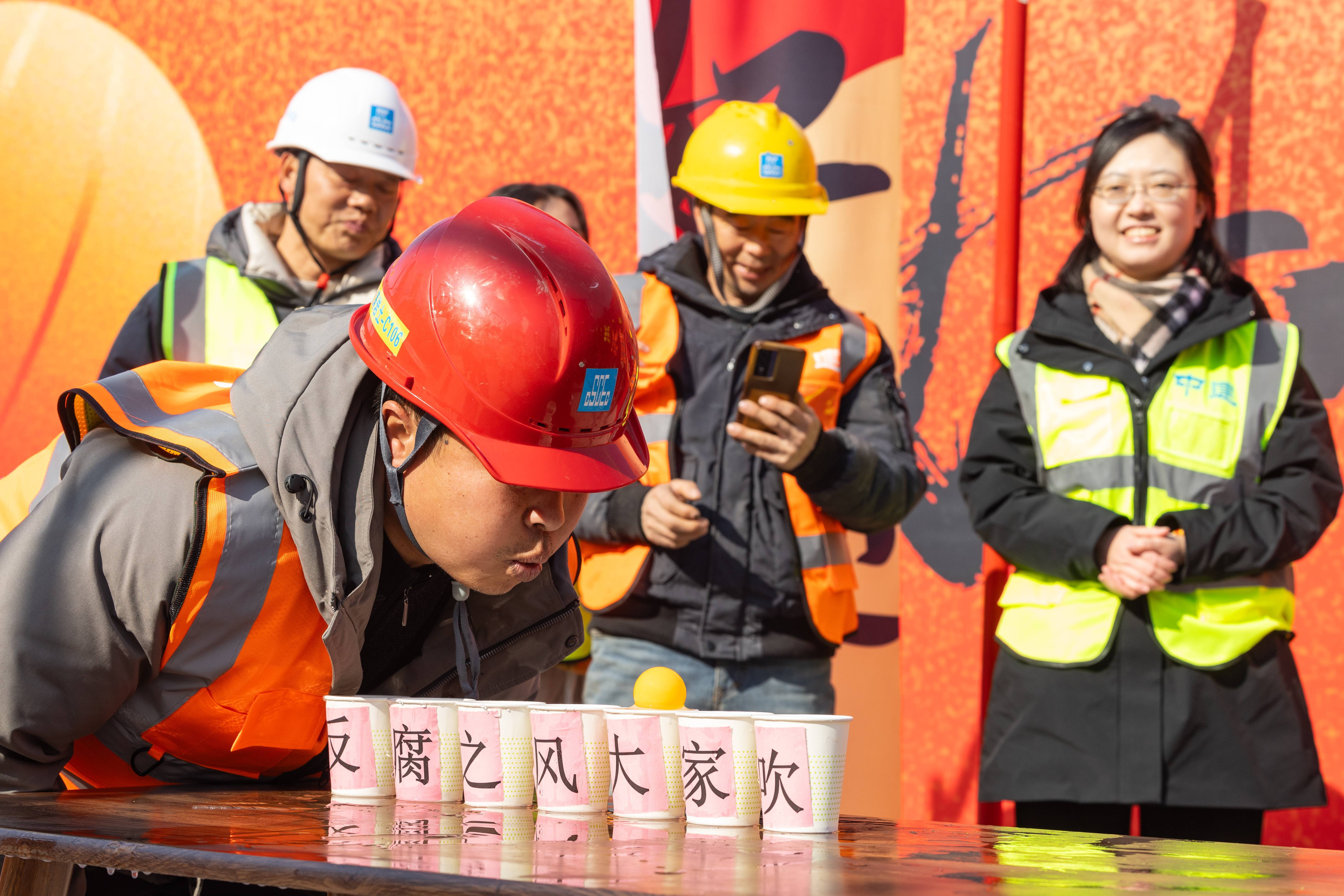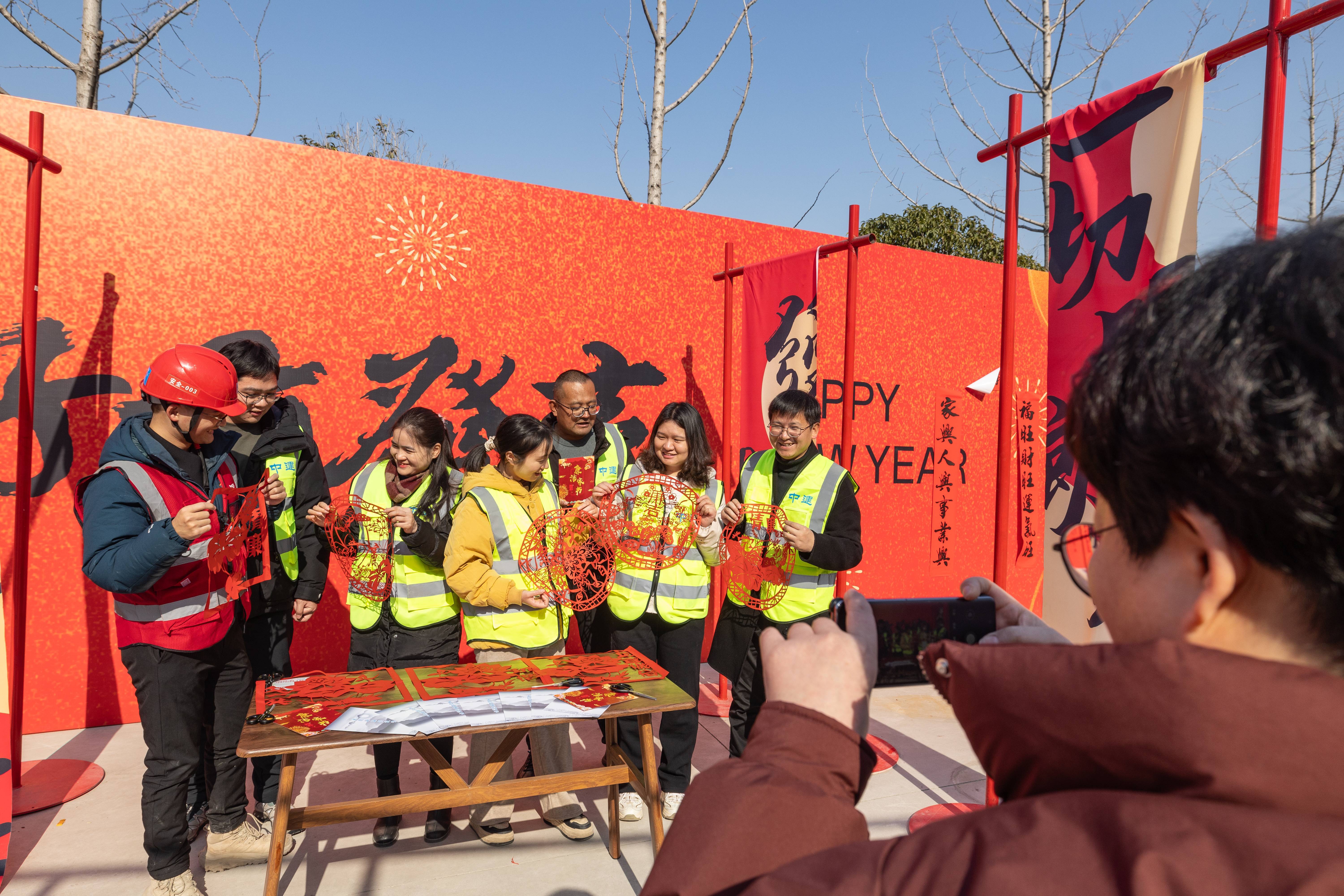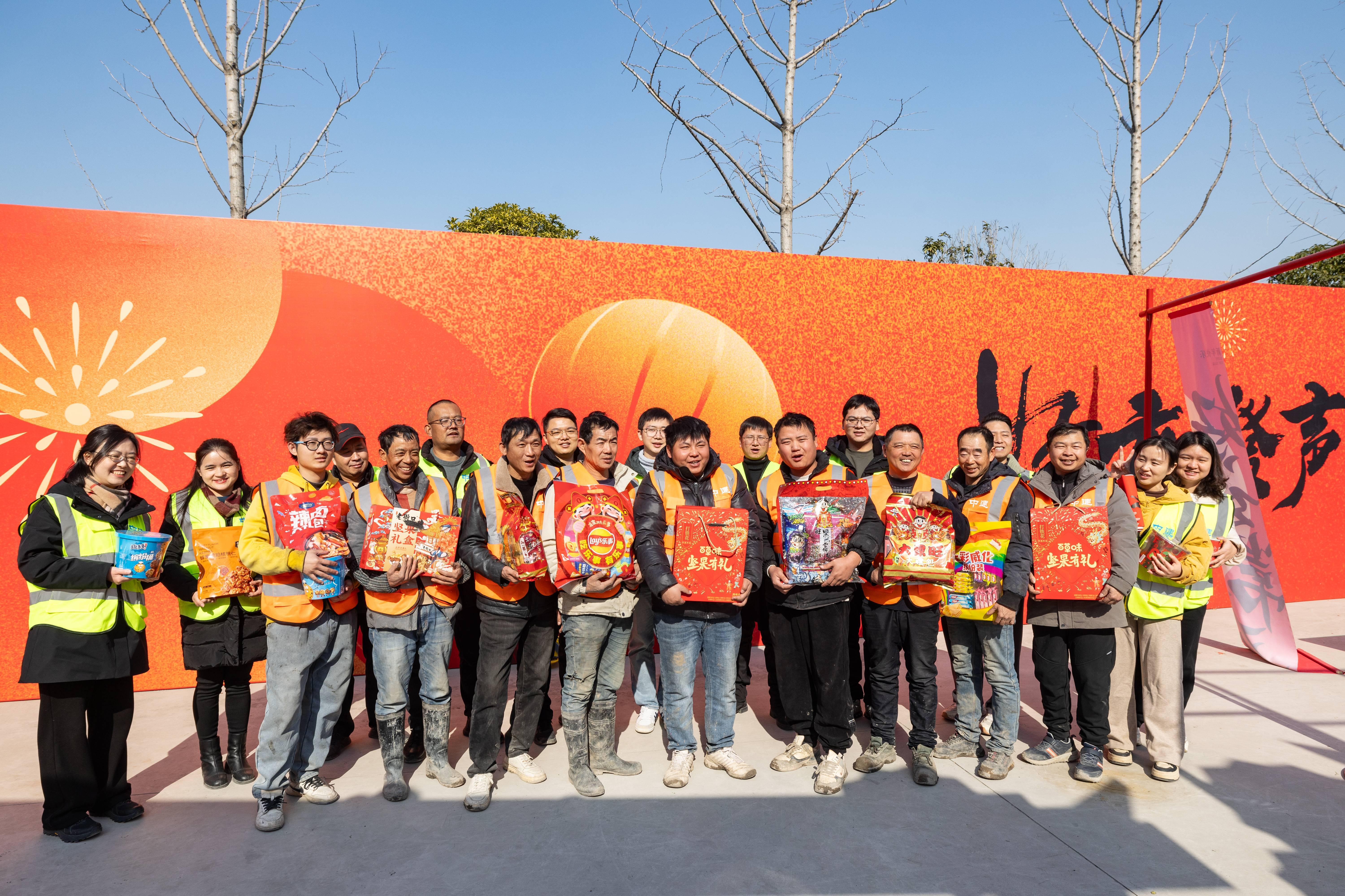 2025年1月16日,在武汉市青山滨江商务区工地上,项目职工和工友们欢聚一堂庆祝即将来临的蛇年春节。