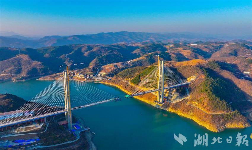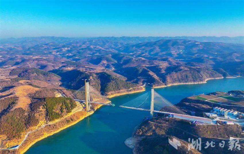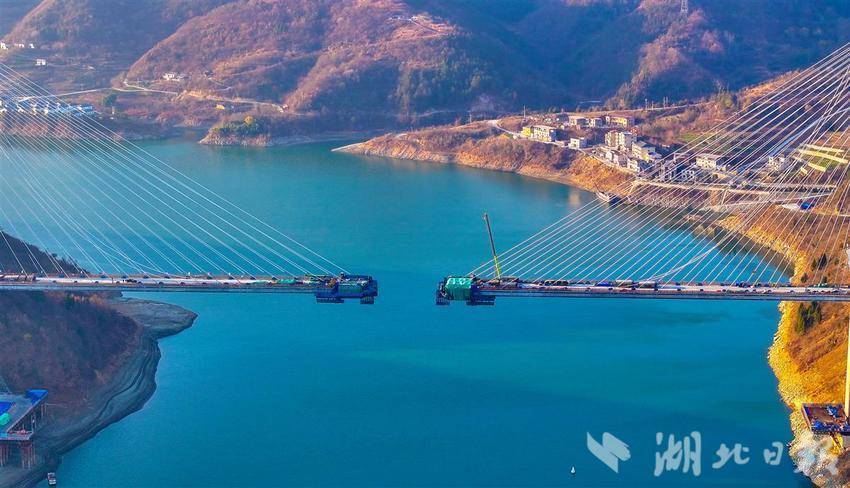 1月16日,中铁十一局建设者在西十高铁汉江特大桥加紧施工,冲刺4月份全桥合龙。该桥全长917.45米,主跨420米,是目前国内最大跨度的梁桁组合结构斜拉桥。西十高铁建成通车后,将形成西安至武汉间的便捷高铁通道,对于加强关中平原城市群与长江中游城市群的联系具有重要意义。(湖北日报全媒记者田悦 通讯员 李校峰 古建敖 摄)