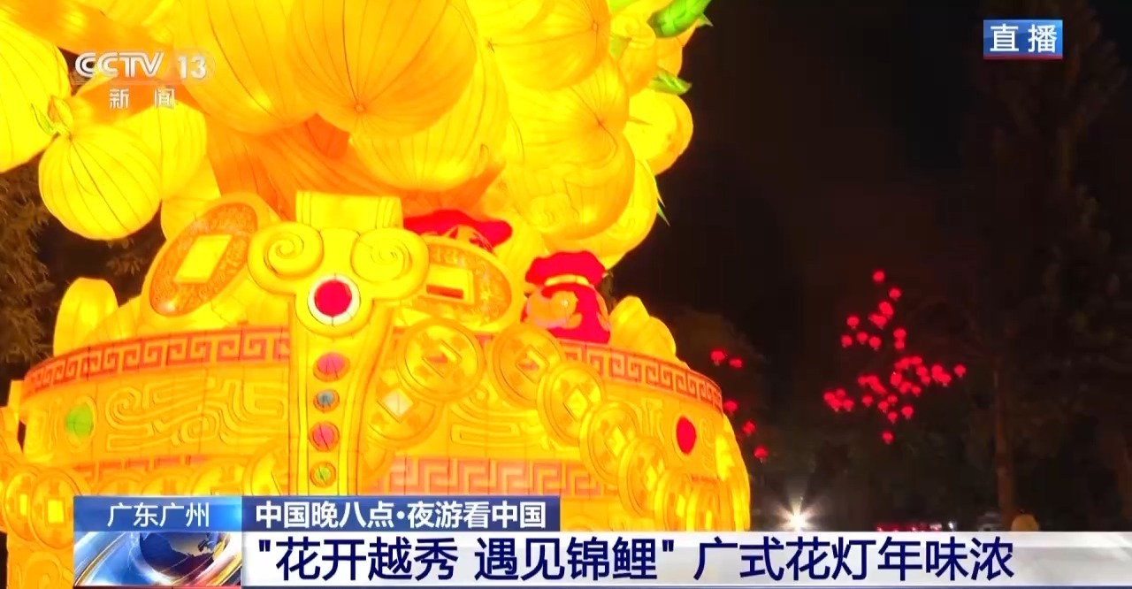 春节赏花灯是广州人过年的一项重要传统活动。在今年广州越秀公园的灯会上,能看到不少岭南风味的特色灯组,比如超过七层楼高的粤剧凤冠彩灯还有长一百二十米的锦鲤灯组等等。