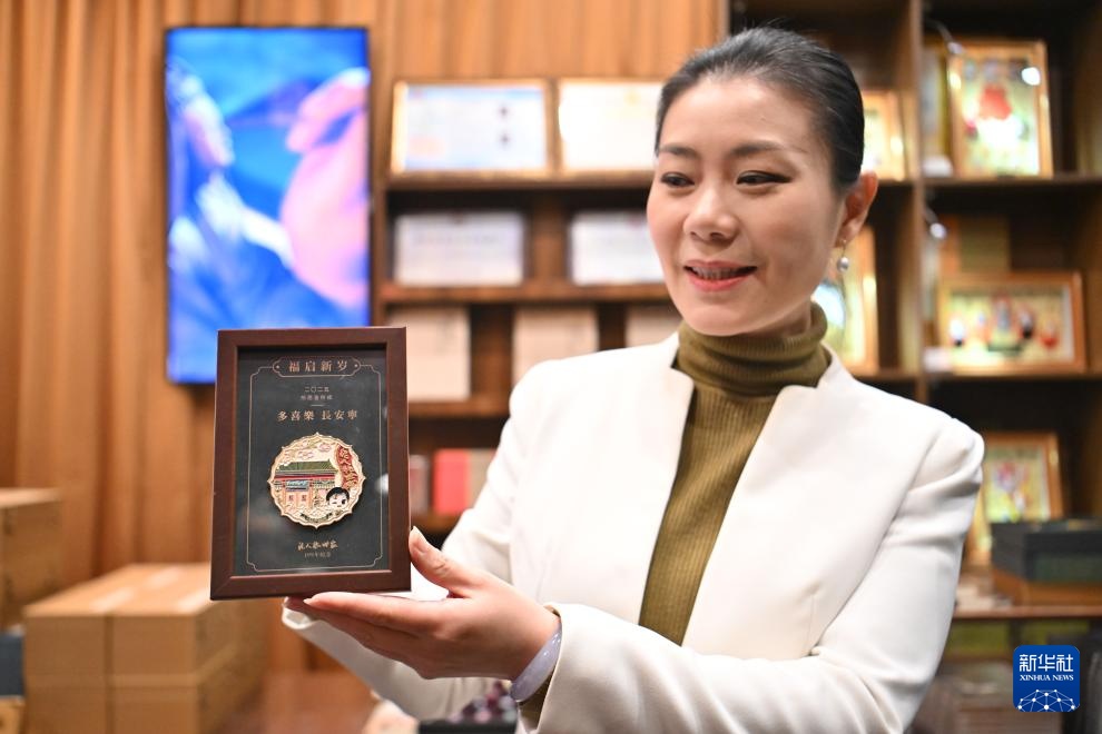 在天津古文化街泥人张世家,泥人张世家副总经理李丹向记者展示一款泥人张新年文创产品(1月20日摄)。