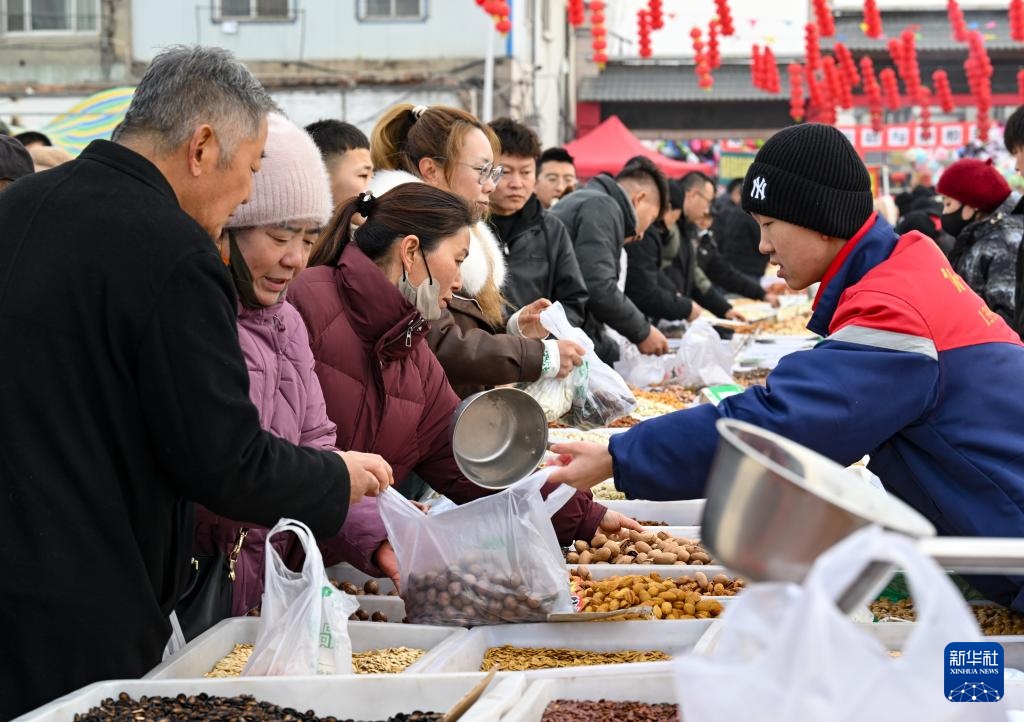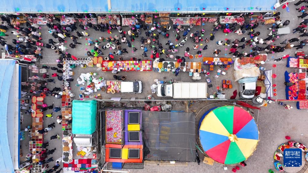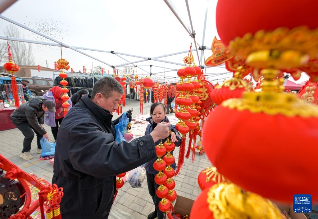 临近春节,宁夏银川市贺兰县金贵集贸市场货品琳琅满目,洋溢着浓浓年味。种类繁多的糕点干果、生鲜果蔬、新年饰品等年货吸引人们前来选购。据了解,金贵大集是集购物、饮食、观赏、休闲于一体的综合集市,逢日期尾号1、4、7开集。