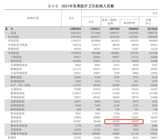 当然,除了床位数量,康复医师数量短缺也是未来需要解决的一大问题。