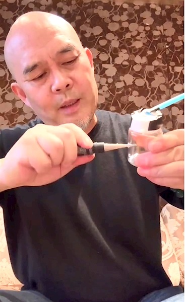 赵洪啸用自制的药瓶陶笛,吹出悠扬的曲子 受访者供图