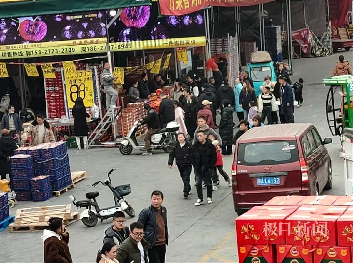 连日来,极目新闻记者分别走访汉口北的新华南果品批发市场,以及武昌的光霞果品批发市场发现,车厘子依然占据了市场里的“顶流”位置。自驾到市场里采购年货水果的市民络绎不绝。摆在商铺前的车厘子按照不同规格,每斤价格从15元到30元不等。有商户表示,过去半个月里,车厘子到货量日益增多,目前的销量也比去年实现了成倍增长:“今年春节前的行情是货多、价低、优惠大,大家随时过来买水果都是实惠价。”