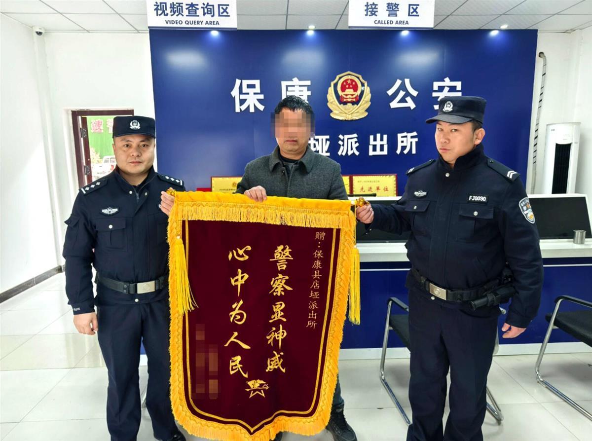 1月21日,湖北省襄阳市保康县店垭镇村民王先生将一面绣有“警察显神威 心中为人民”的锦旗送到店垭派出所,感谢民警为其儿子晓昶挽损5万余元。