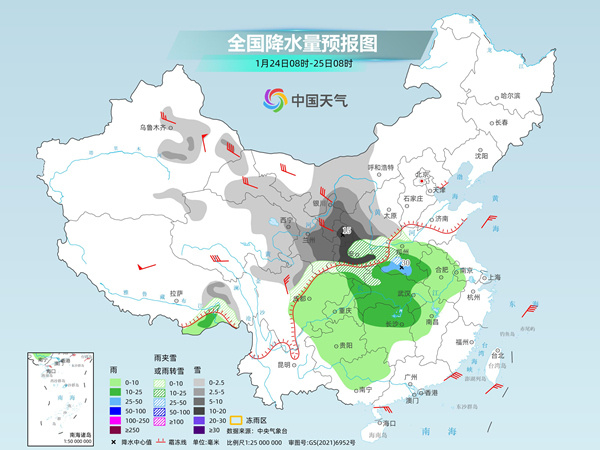 明天,内蒙古西部、新疆沿天山地区和东部、西藏东南部、西北地区中东部、华北西南部、黄淮西部、川西高原北部等地部分地区有小到中雪或雨夹雪,其中,内蒙古河套地区、甘肃中东部、宁夏、陕西中南部等地部分地区有大到暴雪。黄淮西部、江淮大部、江汉、江南中部和西部、西南地区东部、华南西北部等地部分地区有小到中雨,其中,河南南部局地有大雨。
