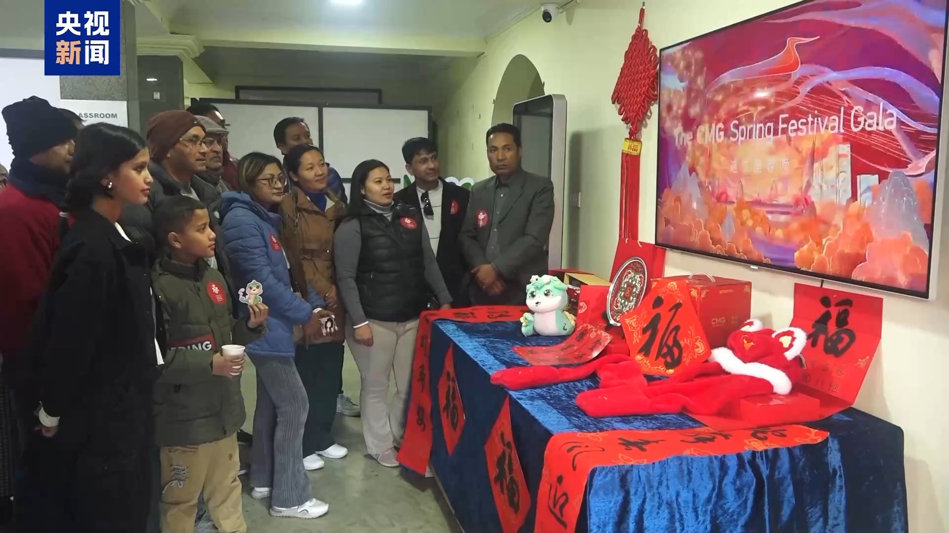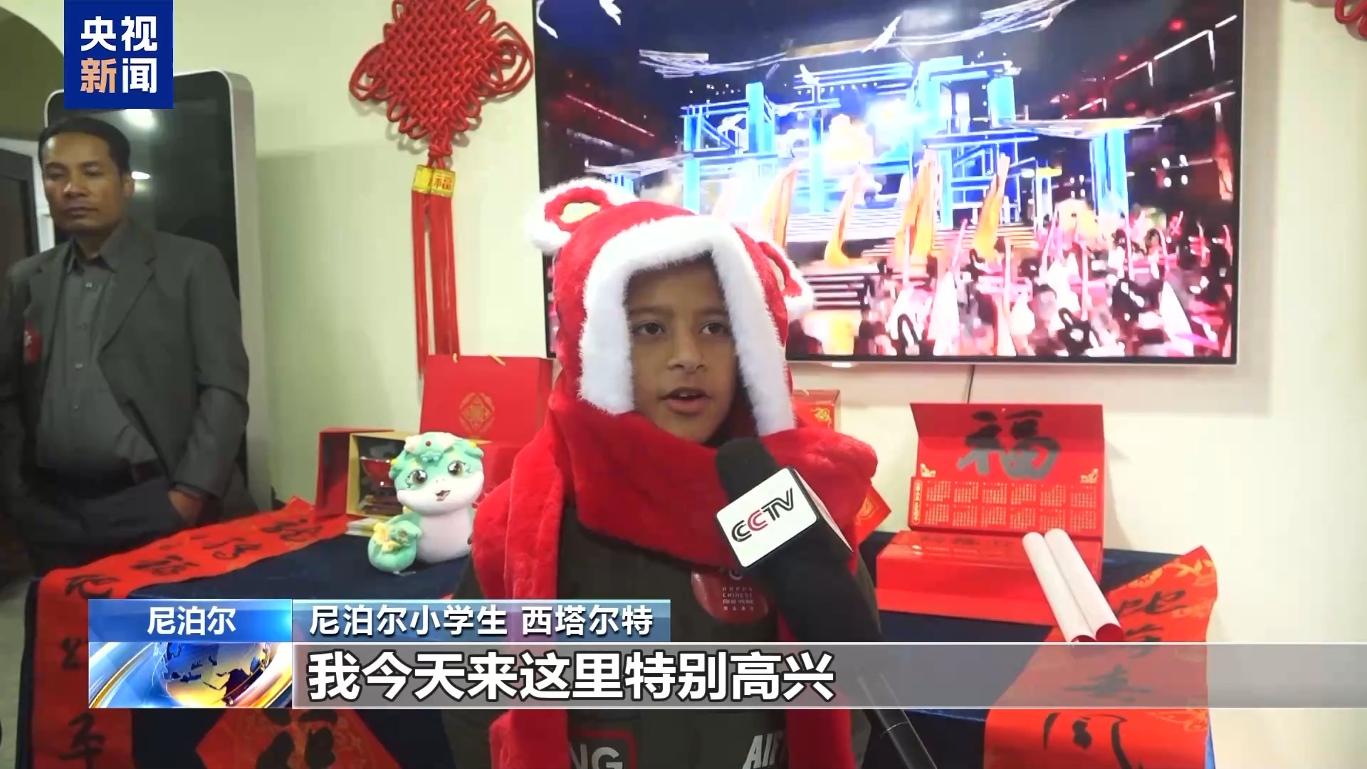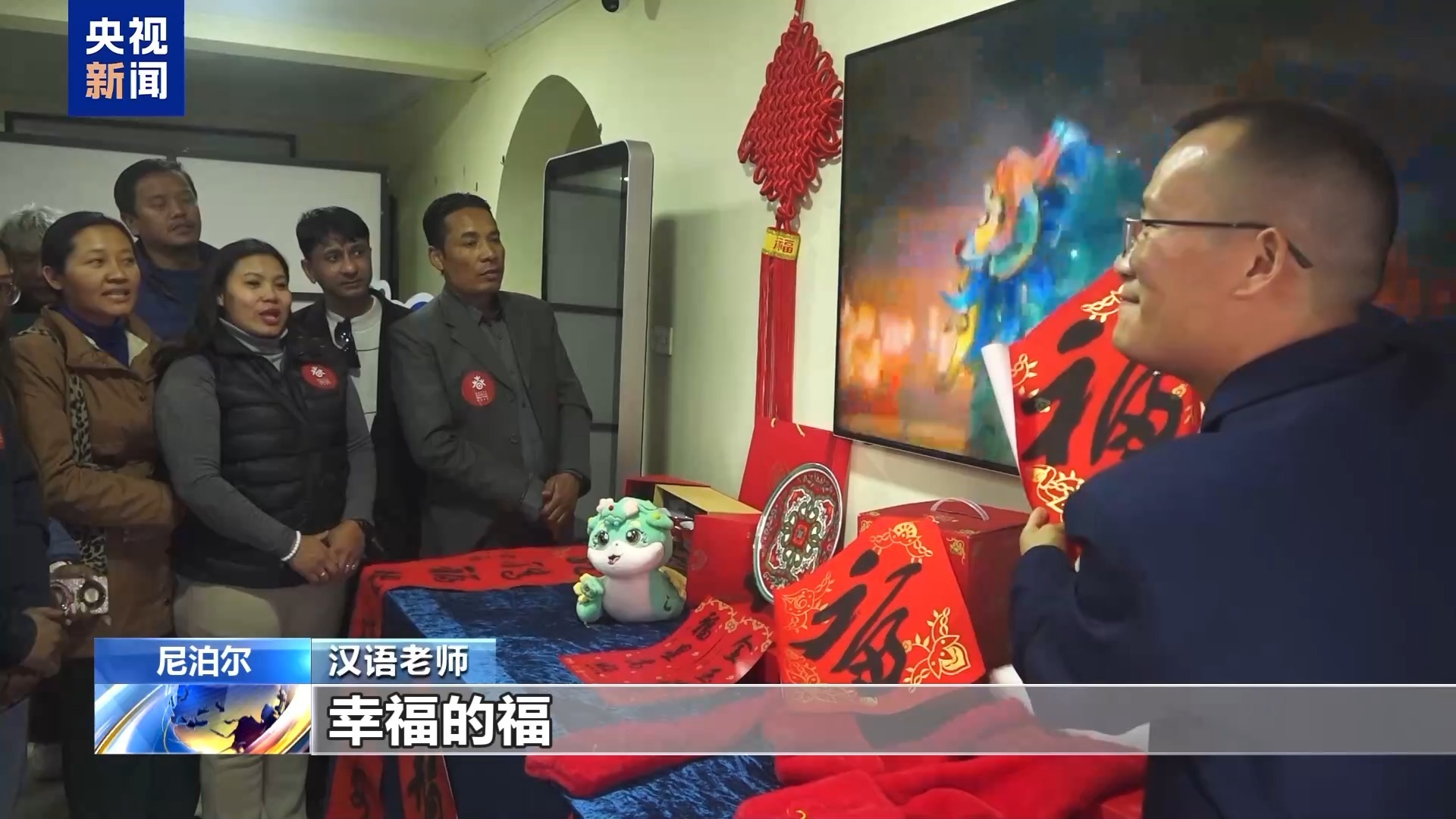 在尼泊尔,尼泊尔中国文化中心举行新春游园会,来宾在现场不仅体验了书法、剪纸等中国传统文化,还通过总台春晚的宣介展台体验了一堂别开生面的汉语课。