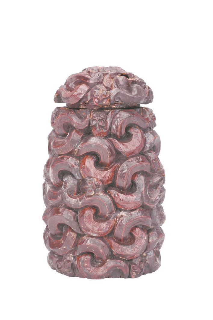 战国 彩绘木雕蟠蛇漆卮。荆州博物馆藏