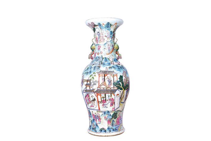 清代 粉彩白蛇传故事图凤耳瓷瓶。武汉博物馆藏
