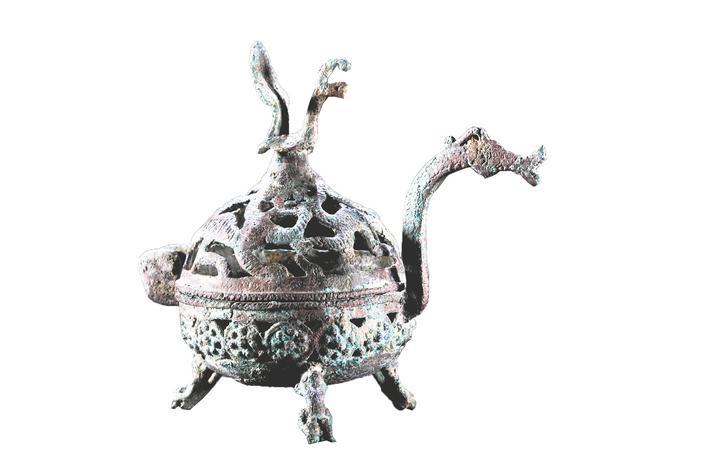 三国早期 透雕花纹“四神”铜熏炉。襄阳市博物馆藏(杨力 摄)