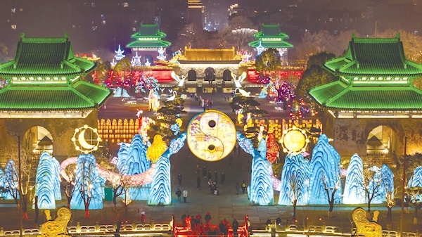 1月22日晚,“武当年和天下”玉虚宫花灯游园活动启幕,数千盏不同类型的花灯将玉虚宫装点成灯的海洋。游园活动展区总面积达10万平方米,分为迎宾休闲区、主花灯区、新年主舞台表演区等四大区域。记者刘昆吕伟摄