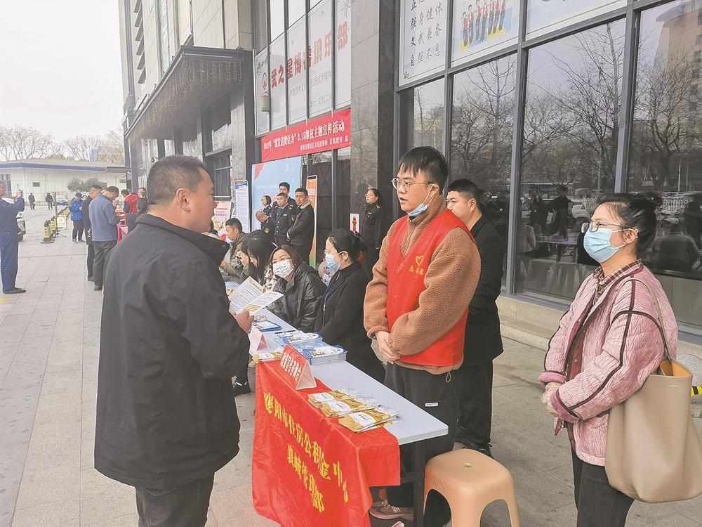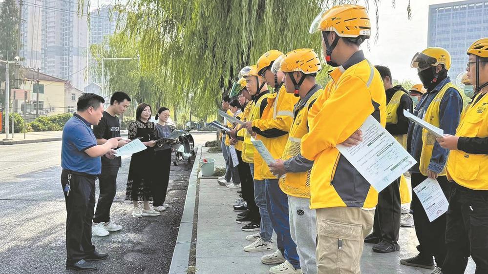 宜城办事处工作人员向外卖小哥宣讲公积金政策。