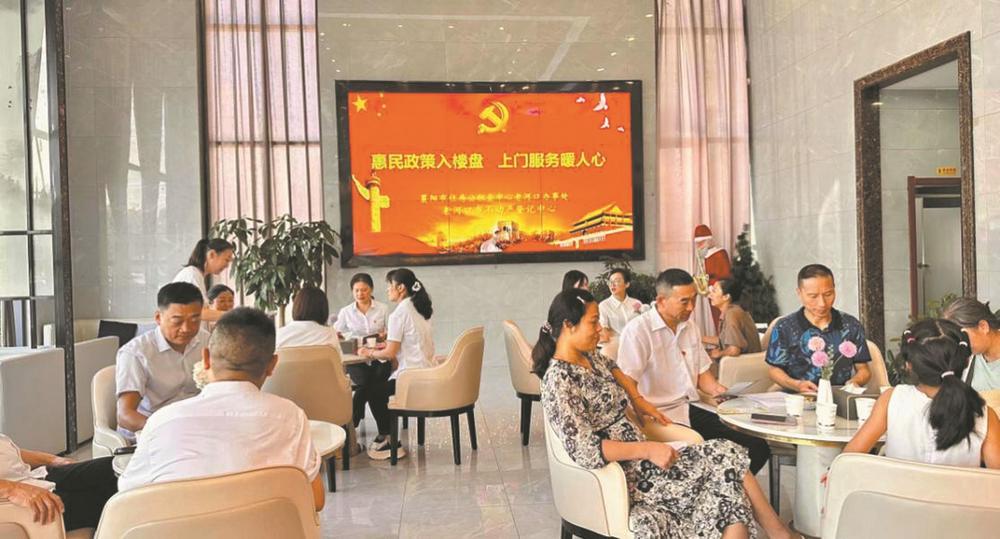 老河口办事处工作人员走进楼盘宣传公积金政策。