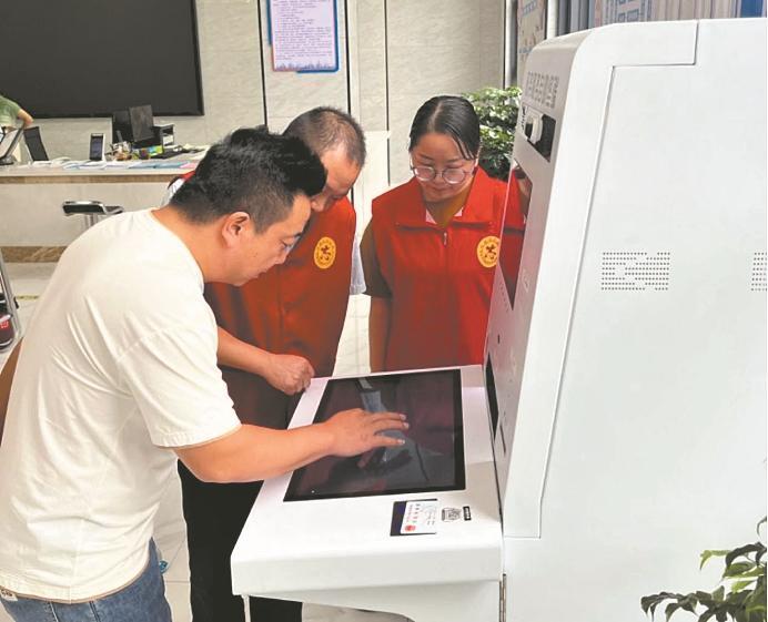 保康办事处工作人员指导群众使用自助一体机办理业务。