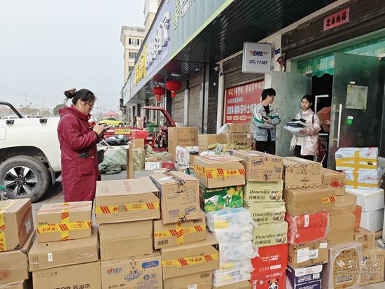 走进路口村村级服务网点,满满当当的货物从屋内摆放到屋外。“全国各地都有,大多是购买的年货。”杨莉一边熟练地将包裹归类,一边介绍说。大到洗衣机、冰箱、空气炸锅等物件,小到水果、零食、贴画、鲜花、摆件等新年必备品,商品琳琅满目,产地四面八方,“每天收派件量1000多件,比平时增加了一倍。”