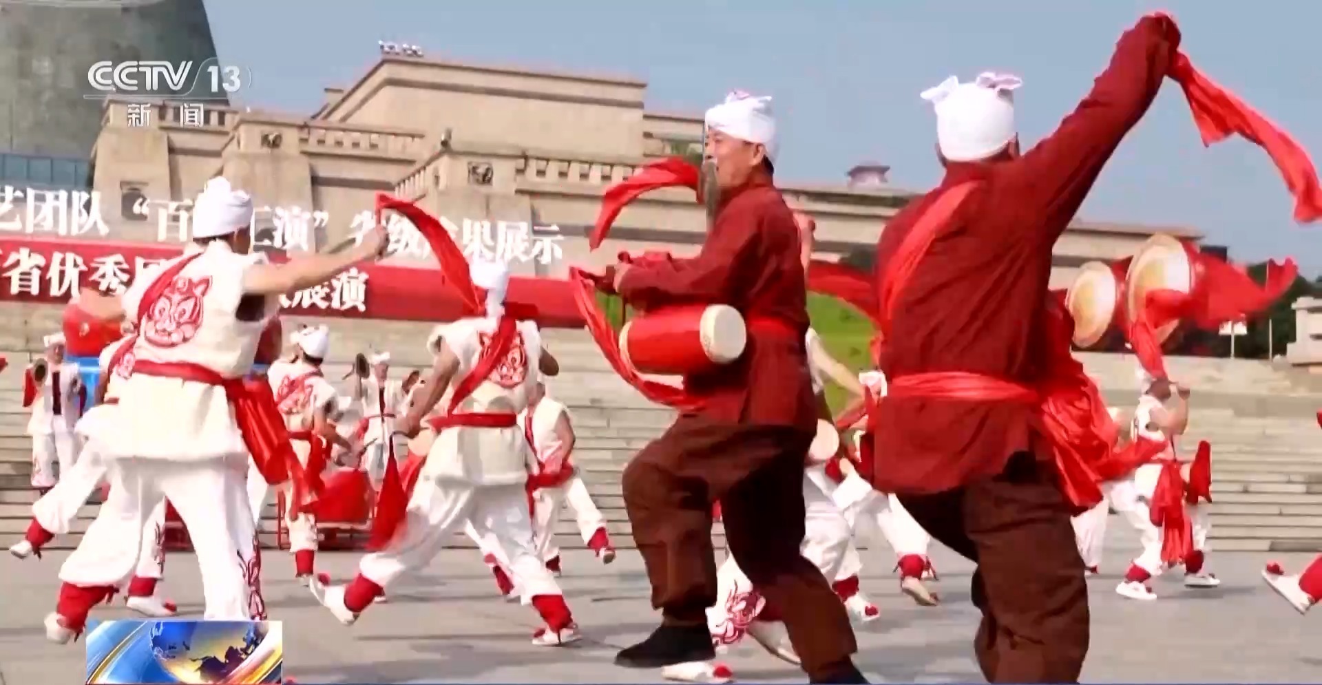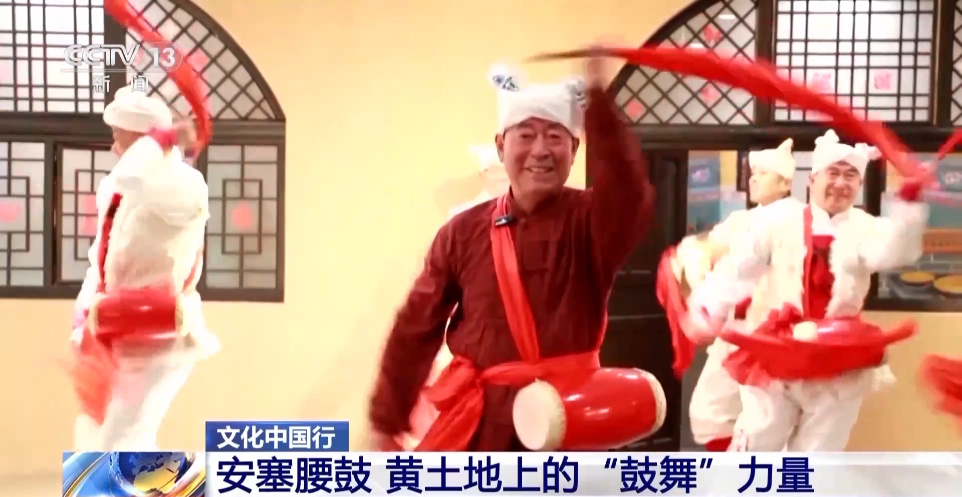 安塞腰鼓国家级非遗代表性传承人 刘延河:比如说摇头摆尾,一开始打那个缠腰,我们摇头摆尾要有股能劲、挥槌要有股猛劲、转身要有股虎劲、踢腿要有股蛮劲,我们要把这几个劲打出来。