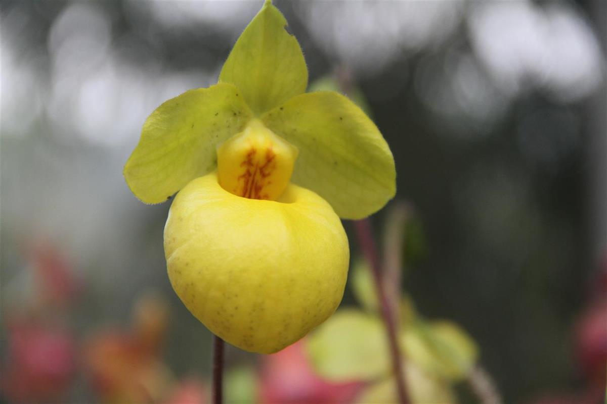 “金黄色的杏黄兜兰发现时,震惊世界。”兰花中,黄色少见,杨福勇给游客们介绍了杏黄兜兰的价值。