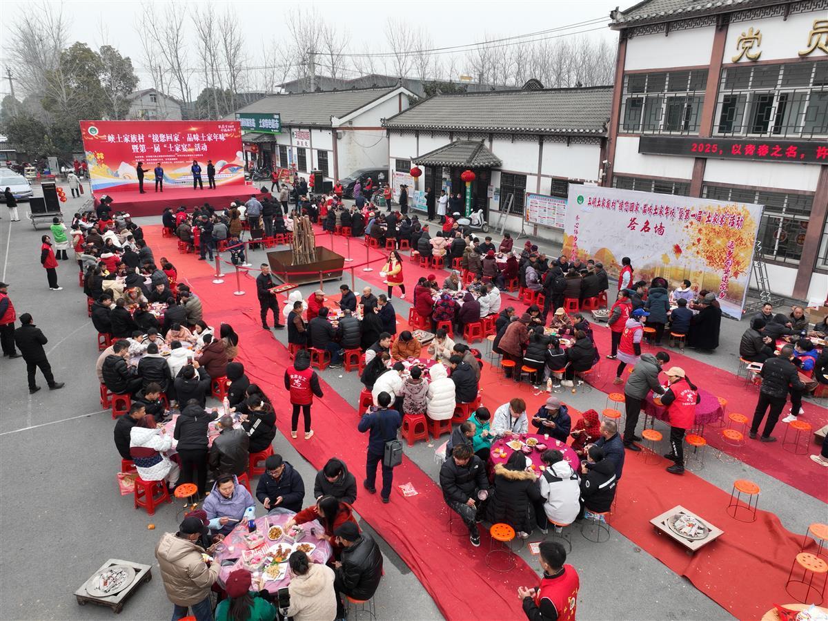 1月23日,荆门市沙洋县沙洋镇三峡土家族村洋溢着浓浓的节日氛围,由沙洋镇三峡土家族村村民委员会和沙洋镇三峡土家族村工会联合会共同举办的“接您回家·品味土家年味”暨第一届“土家宴”活动在此热烈举行,约400名外出务工返乡人员、70周岁以上老人齐聚一堂,共同感受家乡的新变化与独特的土家文化魅力。