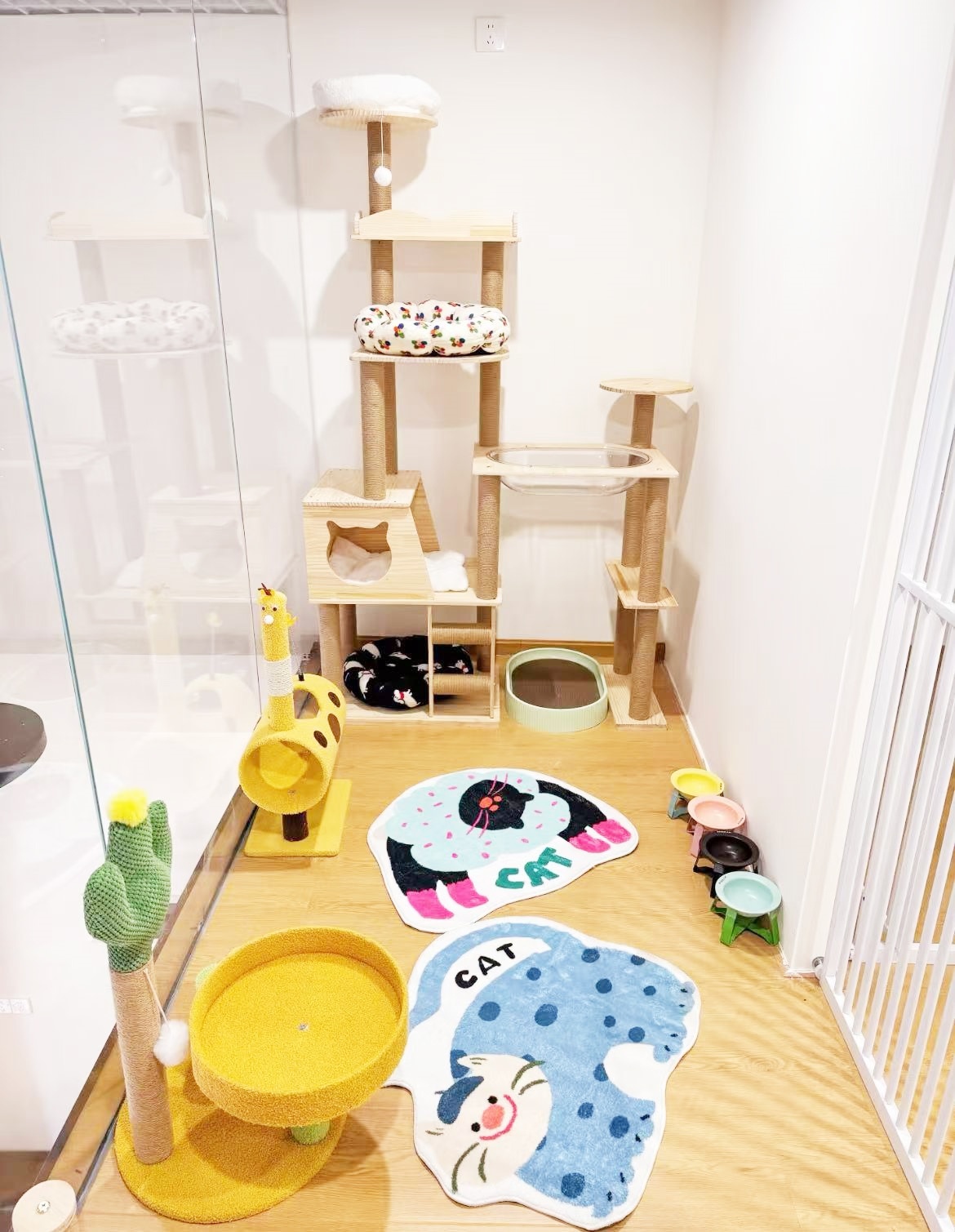 寄养间内的蒲团、猫架,供猫咪玩耍 受访者供图