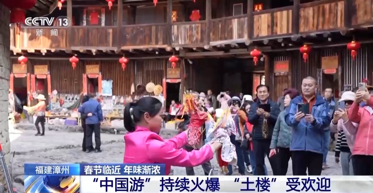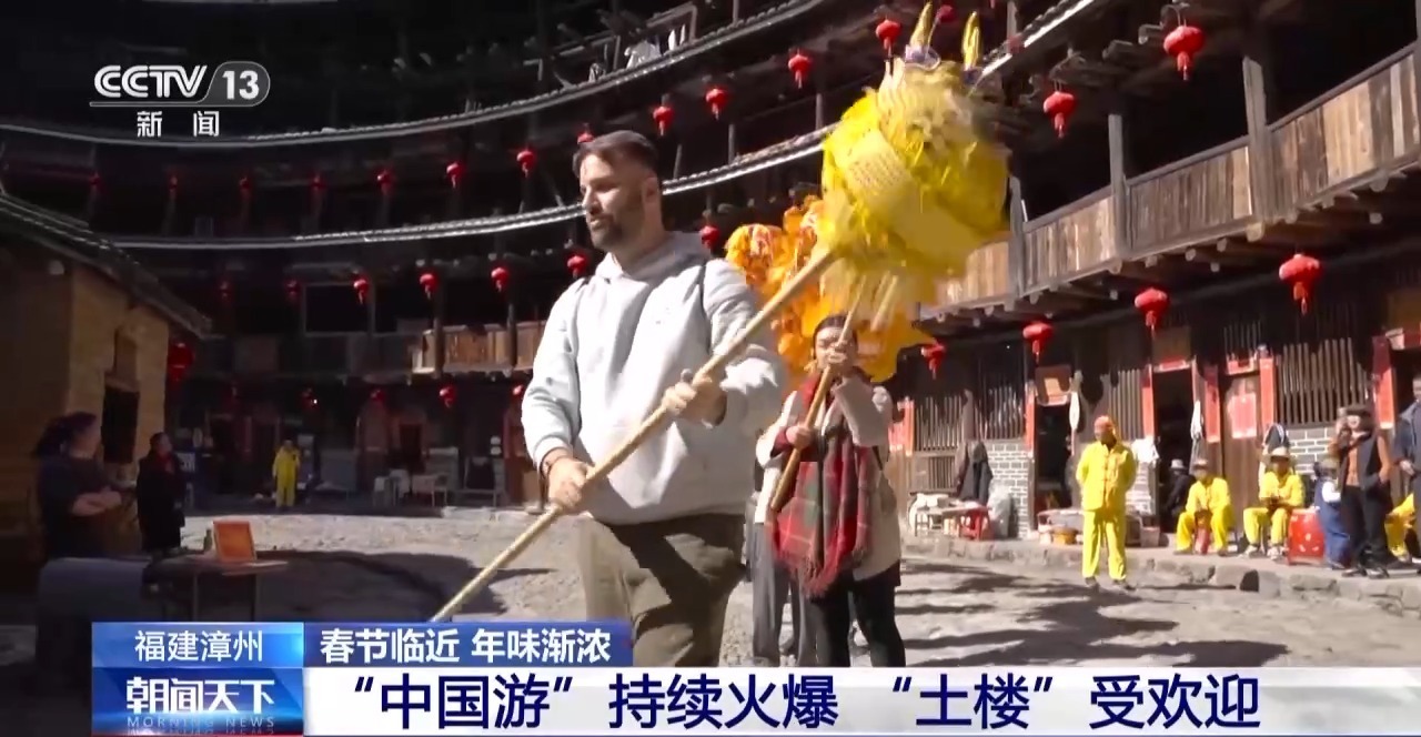 随着过境免签活动范围的扩大,临近春节,福建漳州的南靖土楼景区已经迎来一批批外国游客。大家沉浸式感受体验土楼的年味。