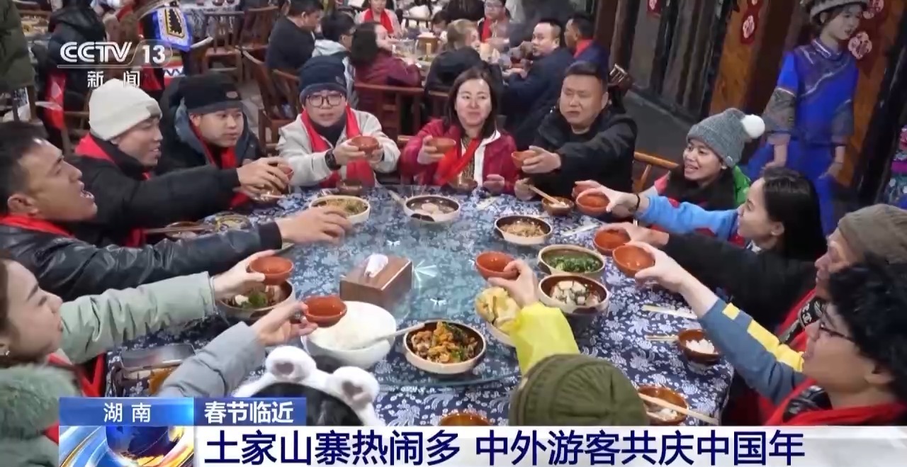 新春佳节期间,不少境外游客选择来到全国各地体验原汁原味儿的中国年。春节临近,在湖南土家族山寨中,正火热开展丰富的民俗文化活动,吸引了不少外国游客前来体验。