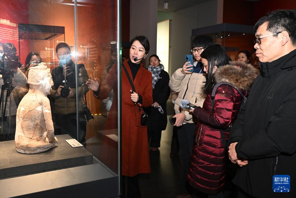 1月27日,参观者在展厅内观看对出土文物运用3D虚拟拼合技术。