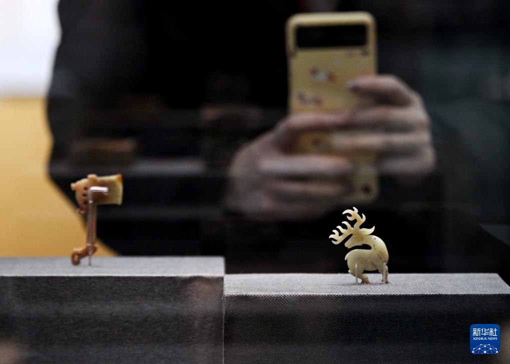 1月27日,参观者在展厅内拍摄展陈的精美玉器。