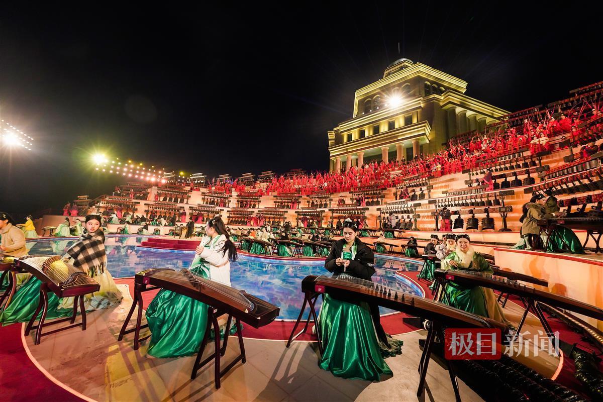 极目新闻记者此前在武汉横渡长江博物馆探访了楚乐演出的录制现场,足足500人的演出阵容紧邻长江边,编钟、古琴、古筝等乐器将同时登场。
