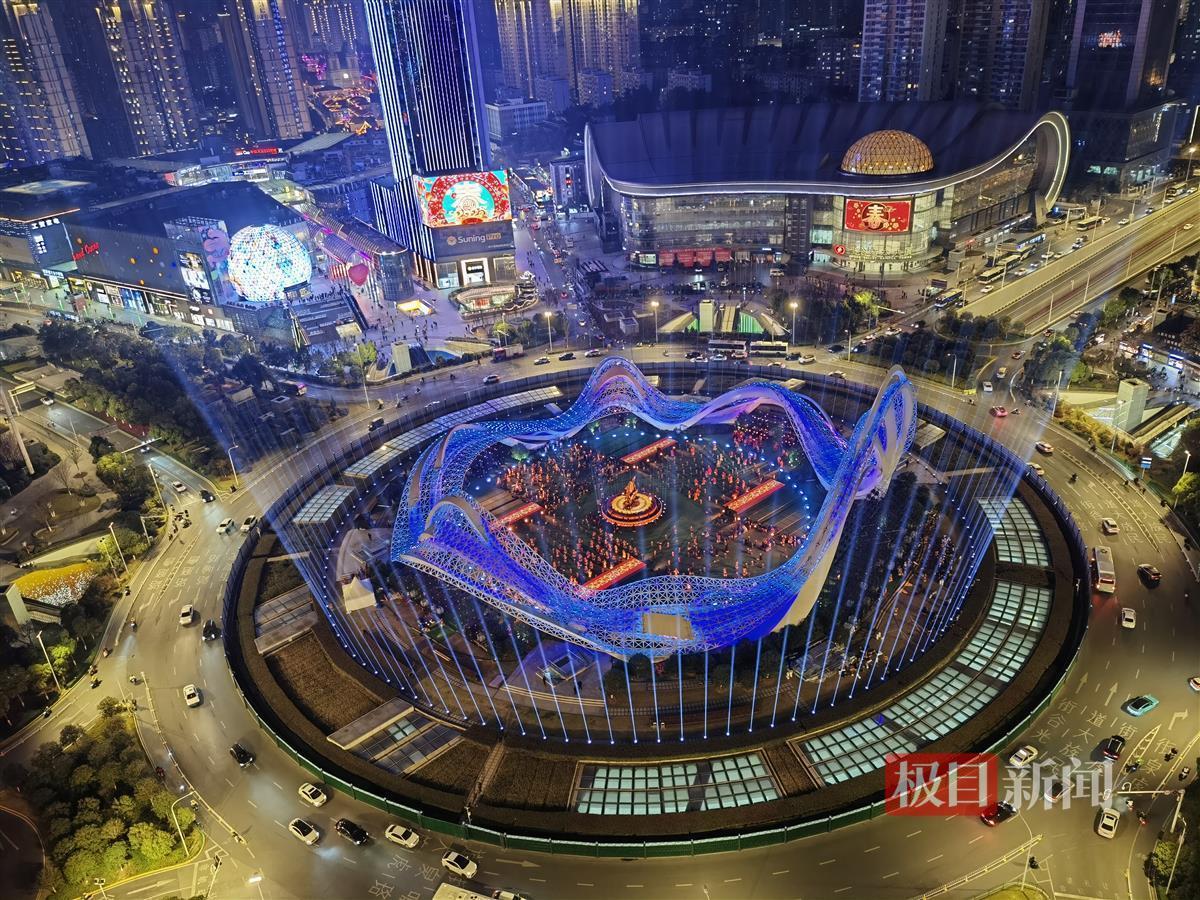 其次,看光谷广场30秒琴鼓声里的星河璀璨。