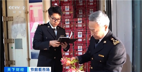 百米之外,2吨来自越南的火龙果正在接受海关关员的查验,合格后马上就可以进入交易中心销售。