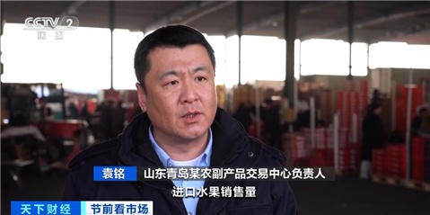 山东青岛某农副产品交易中心负责人 袁铭:现在平均每天交易中心进口水果的销售量在3000吨左右,之后还会持续增长,春节前后还会有大量的进口水果陆续到港。