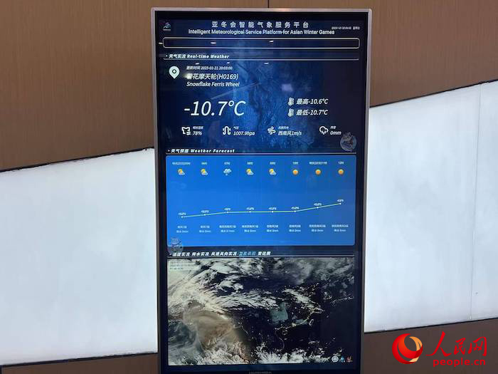 摩天轮等候大厅实时显示的气象信息。人民网 高清扬摄