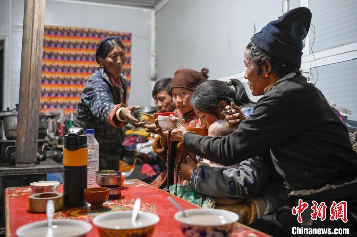 “今年我们家的‘古突’(一种藏式面食)里有面疙瘩、牛肉、蕨麻、奶渣、米饭,很香、很好吃。”1月28日是农历春节除夕,恰逢日喀则农事新年“古突夜”,在西藏定日县曲洛乡措昂村安置板房内,20岁的央宗喝完一碗母亲煮的“古突”后对中新社记者说。