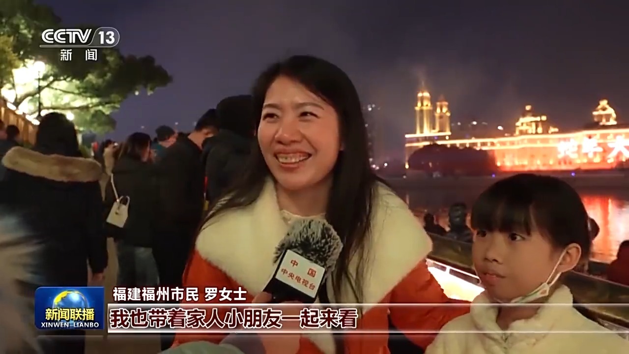 福建福州市民 罗女士:非常壮观,也非常漂亮。我也带着家人小朋友一起来看,新的一年,祝大家平平安安、健健康康、蛇年大吉。