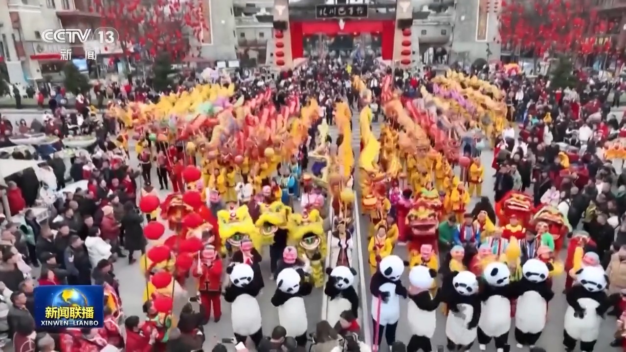 在山东日照,莒县古城热闹非凡,当地设立非遗市集,还为游人准备了醒狮和舞龙展演,大家载歌载舞,共庆蛇年新春。