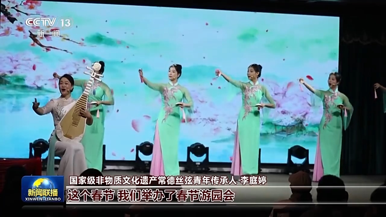 国家级非物质文化遗产常德丝弦青年传承人 李庭婷:这个春节,我们举办了春节游园会,让更多的市民和游客朋友们感受到非遗的魅力。就像总书记说的,利用好多姿多彩的地方特色传统文化,把它们传承好利用好,与时俱进发展好。