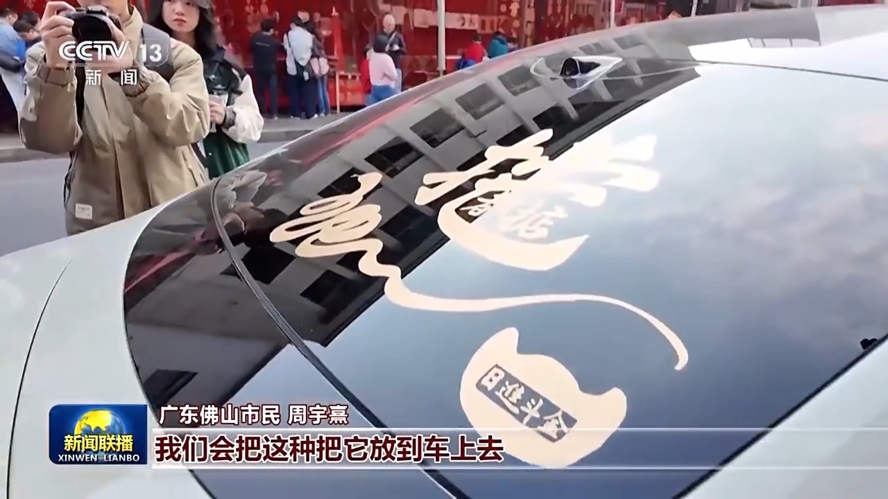 广东佛山市民 周宇熹:以前传统的话,我们会把这个挥春(对联)挂在门上,现在因为大家都有车嘛,我们会把这种放到车上去。“捞乜都掂”,希望今年做什么事都顺风顺水。