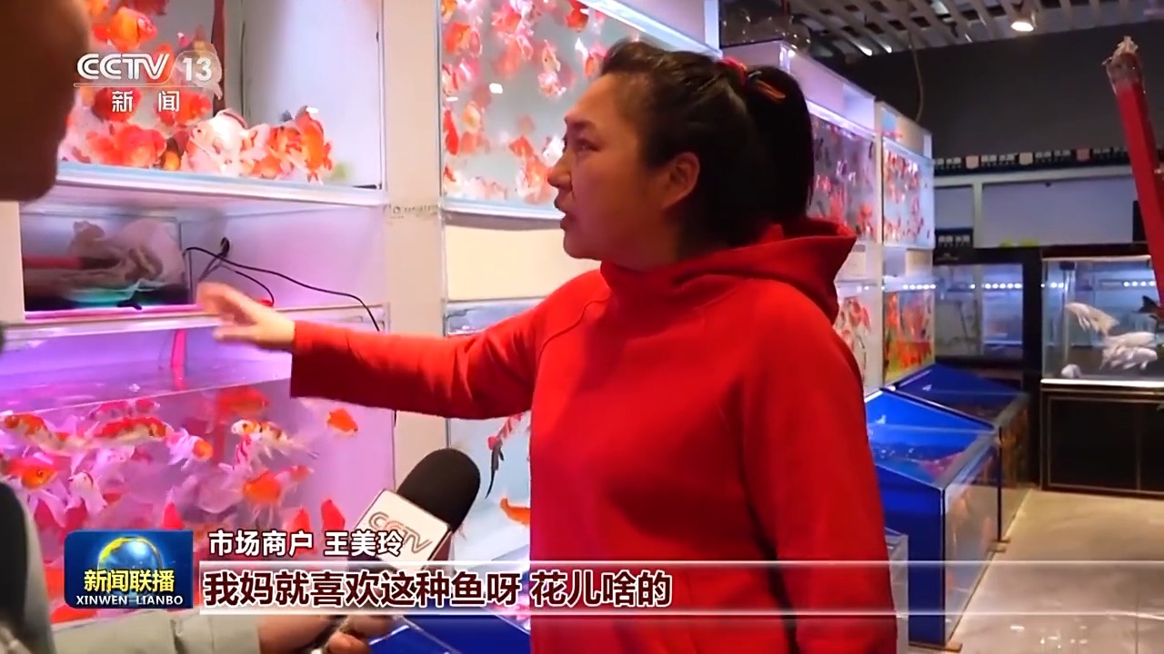 市场商户 王美玲:因为现在吃喝都有了,我妈就喜欢这种鱼、花啥的,带点这种东西回家开开心心、快快乐乐的,这也是情绪价值。