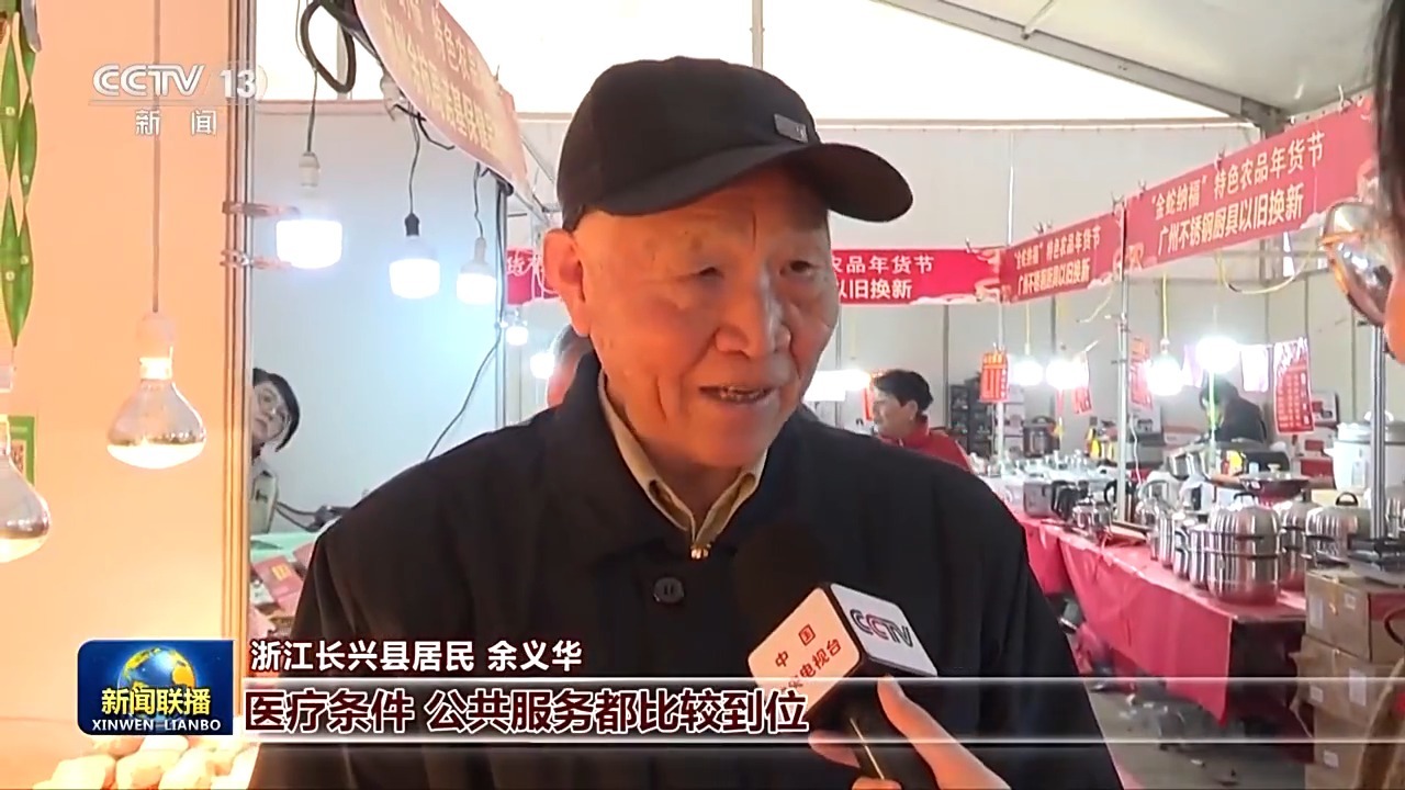 浙江长兴县居民 余义华:我买的黑芝麻,芝麻代表“芝麻开花节节高”,这日子过得每天都幸福啊,医疗条件、公共服务都比较到位,我们生活是一年更比一年好。