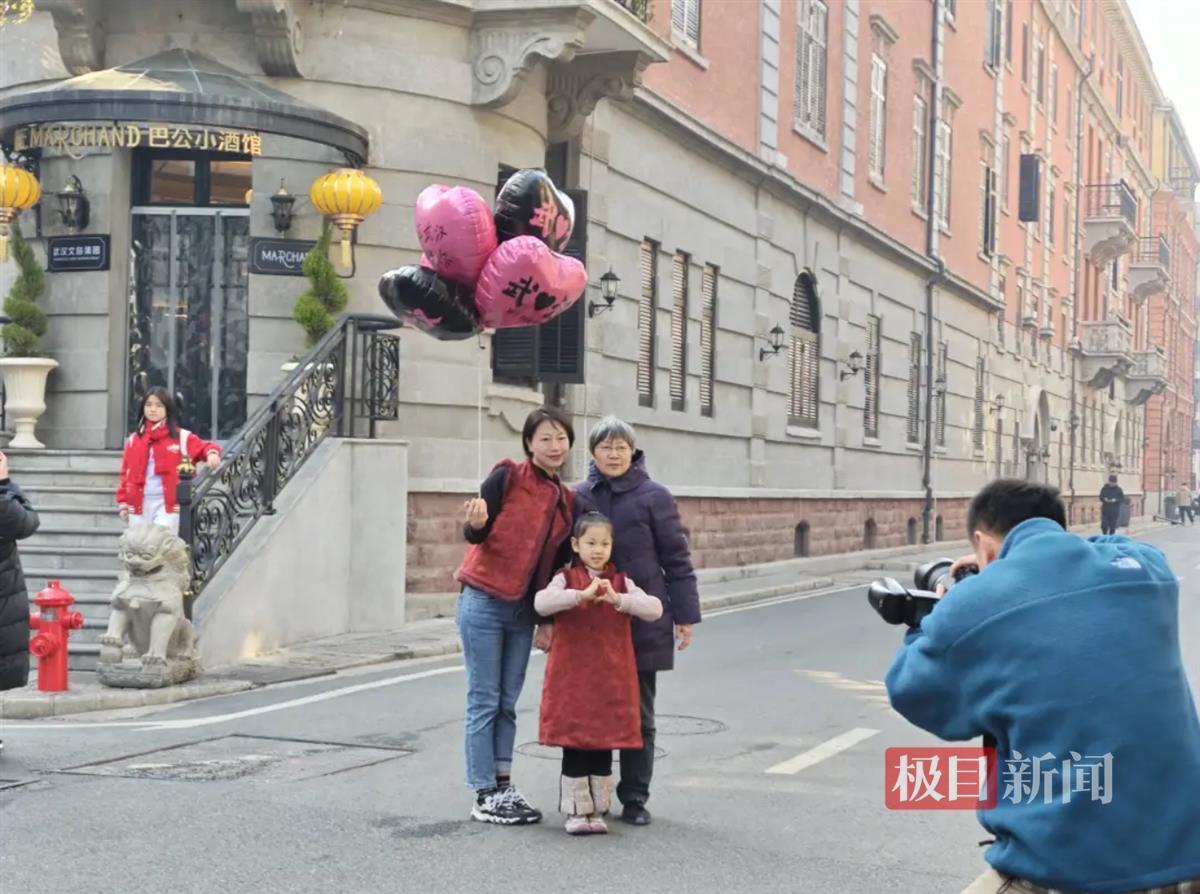 “你看,就是这里,春晚就是在这里拍的。”大年初一上午十点半,武汉巴公房子前已有看了春晚慕名来打卡的游客举着粉红色气球拍照留念。