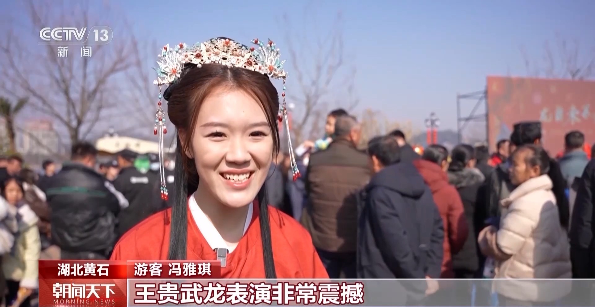游客 冯雅琪:现场非常喜庆热闹,王贵武龙表演非常震撼,不仅让我感受到浓浓的年味,也让我对非遗有了更深入的了解,摸龙头也是希望我今后的日子万事顺意,家庭美满幸福。