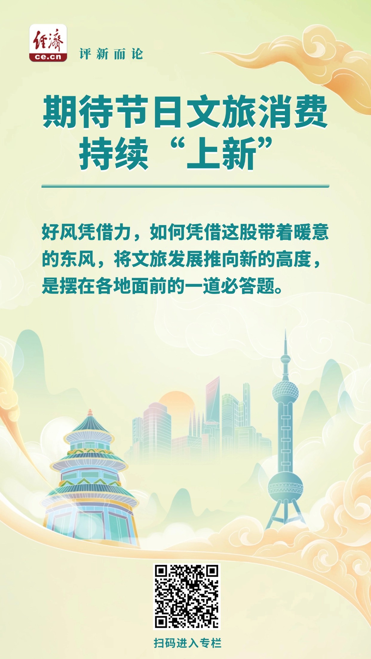 节日文旅消费持续火爆,为各地带来暖意。好风凭借力,如何凭借这股带着暖意的东风,将文旅发展推向新的高度,是摆在各地面前的一道必答题。无论是深耕文化内涵,拓展旅游消费场景,还是提质服务,用“硬核”表现收获游客好感,没有哪种产品形式和服务模式是万能的。文旅消费面向的是消费者,归根结底还是要以满足消费者的现实需求和情绪价值为宗旨,打造文旅融合精品,撬动消费市场繁荣发展。(中国经济网评论员 臧梦雅)