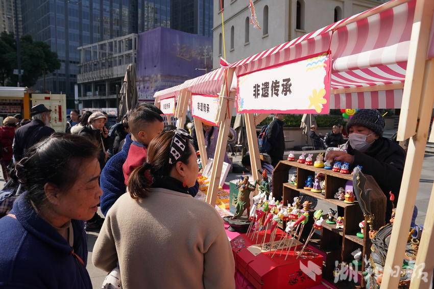 图为游客们在非遗摊位前驻足欣赏、挑选。